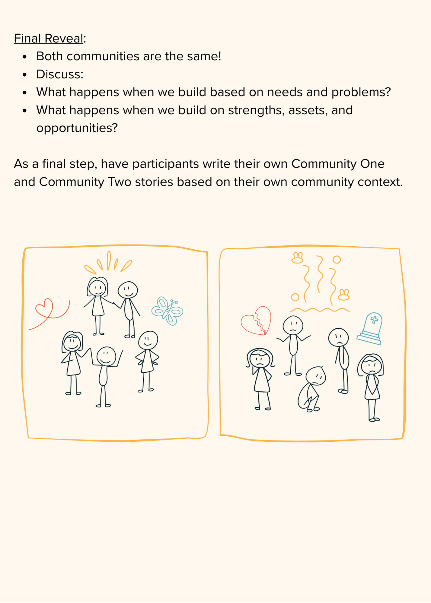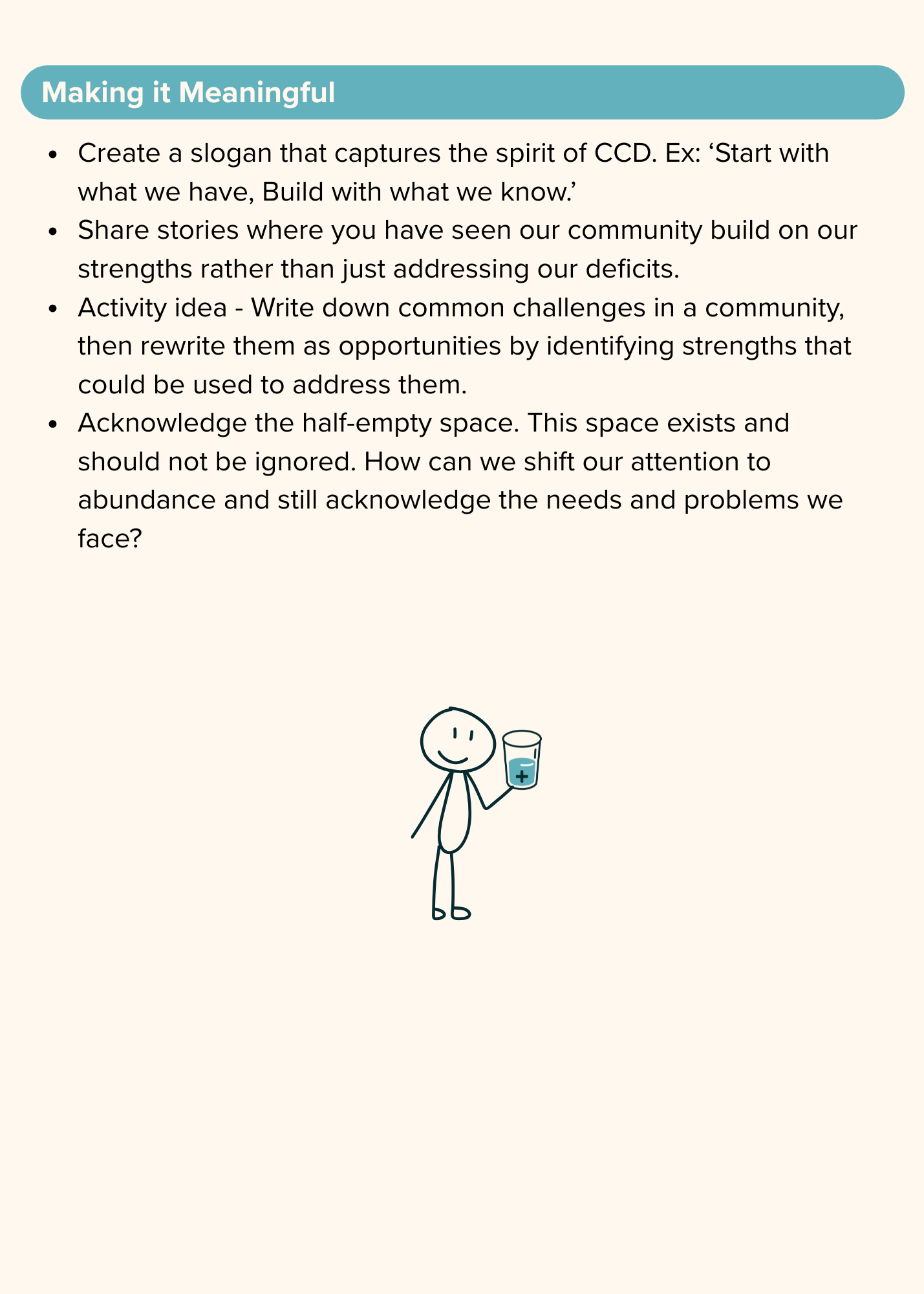 By focusing on strengths and assets instead of needs and